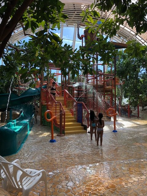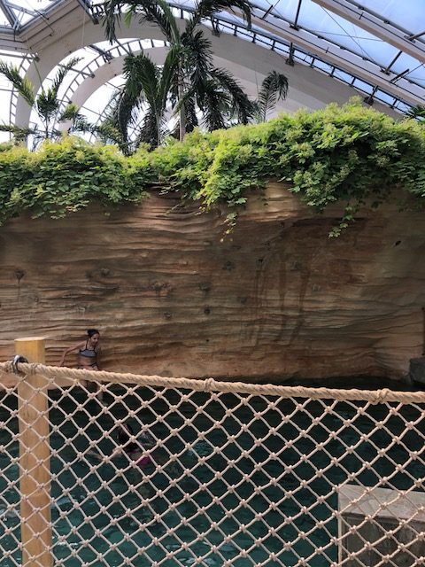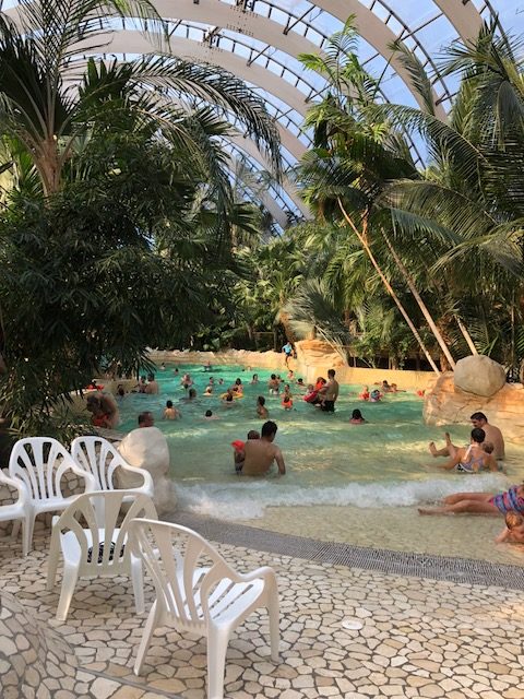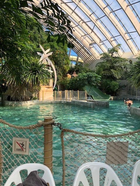 Het zwembad is niet alleen leuk voor de kleintjes, maar ook volwassenen kunnen zich hier binnen en buiten prima vermaken. Met verschillende glijbanen en een klimmuur kun je jezelf prima entertainen. Het “hoofdbad” begint laag en wordt vanzelf dieper naar mate je erin loopt, dus zowel volwassenen als kinderen kunnen hier op verschillende plekken staan. Om de zoveel tijd worden de golven aangezet, lekker het hele zwembad doordeinen!