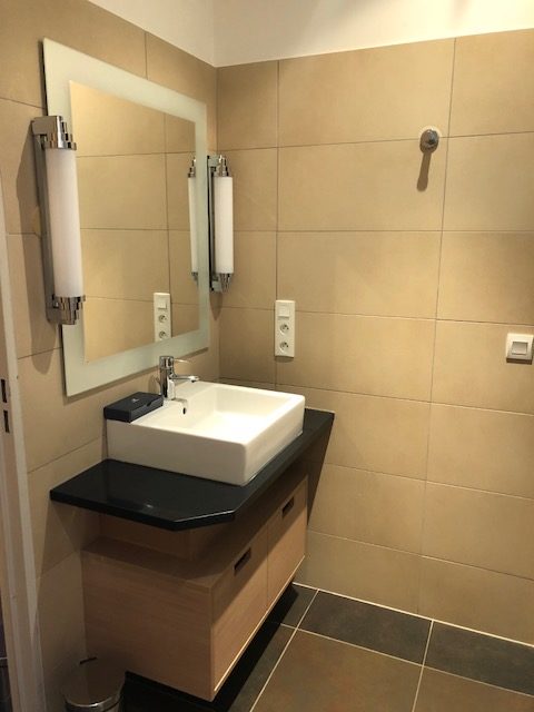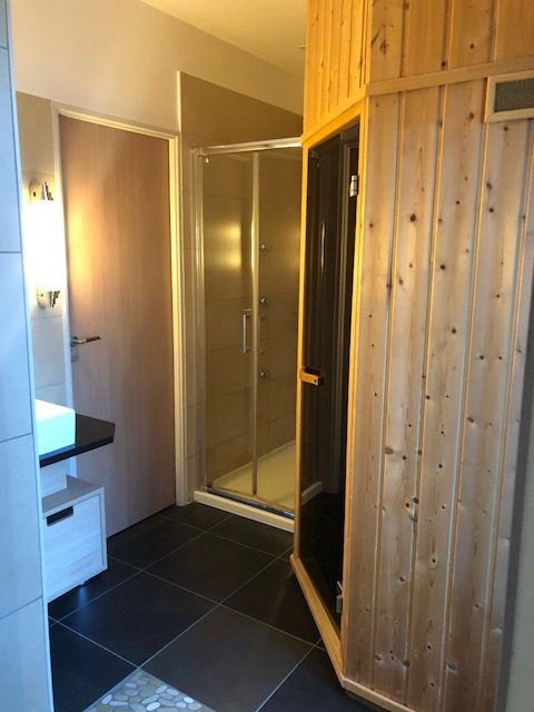 En jongens, die badkamers! Waar wij de woonkamer best klein vonden voor vier personen, vonden we de badkamer(s) ruim! Aan elke slaapkamer grenst een badkamer, dus er is voldoende ruimte om je tanden te poetsen of om je op te maken. In de eerste badkamer zat een sauna en een douche, in de andere een bubbelbad en een toilet. Nu gebruik je beide badkamers omdat er maar één (regen)douche is, maar elke badkamer heeft ook een eigen wastafel. Nu waren wij maar met zijn drieën, maar ik ben inmiddels vaak genoeg weg geweest om te kunnen weten dat een eigen badkamer heel fijn is. Gewoon je tandenborsteltje laten staan zonder dat er ruimte tekort is. En oh, had ik al gezegd dat er ook handdoekenwarmers in de badkamer zijn? Heerlijk om vanuit de douche een warme handdoek te hebben!