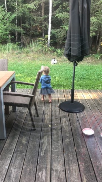 De eerste indruk bij aankomst was positief. Het huisje zag er vanaf de buitenkant mooi uit, de omgeving was groen met struiken, bomen, bosjes en gras om het huisje heen en een eindje verderop een hert die stond te grazen. Laat onze week maar beginnen!
