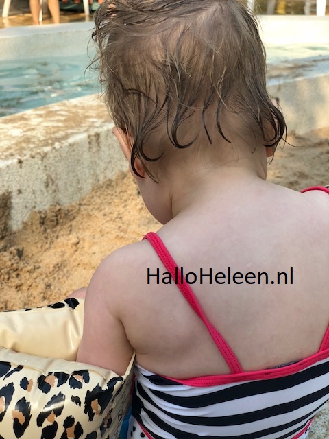 En oh, niet in het huisje maar zó de moeite waard om te vermelden: Het zwembad! Het zwembad kun je vinden in de Market Dome, daar waar je ook de receptie, snackbar, restaurantjes, bowlingbaan, zwembad en de supermarkt; kunt vinden. Alles ligt in een grote hal die volstaat met bomen, planten en vijvers met vissen. Het is in dezelfde stijl als het zwembad. We hebben -met uitzondering van de aankomst en vertrekdag- elke dag in het zwembad gelegen. Cliché, maar als je kind geniet, dan geniet jij ook. En zo zagen wij onze dochter genieten van elke watertrappel die ze deed. Wat wij zelf erg leuk vonden, is dat er een zandbak in het zwembad was. Hanne was daar niet weg te slaan! Ook hadden ze een babyglijbaan en een peuterglijbaan, verschillende waterfiguren die water spuiten en voor de grotere kinderen een heus speeltoestel.