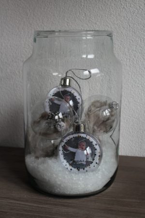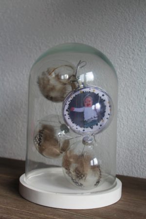 ‘T handige aan kerstballen is dat je ze niet perse in de boom “moet” hangen, maar dat je er nog veel meer mee kunt. Je kunt ze, net als ik heb gedaan, ook in een vaas doen, onder een stolp, in een krans verwerken of op tafel gebruiken ter decoratie van je diner. Opa’s en oma’s zijn vaak ook gek op zulke cadeaus!