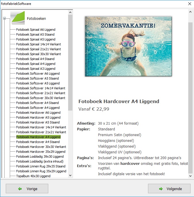 Fotofabriek biedt een gratis softwarepakket voor het vormgeven en bewerken van fotoproducten van perfecte kwaliteit. Maak een fotoalbum, verjaardagskalender, canvas, wenskaarten of één van onze vele fotoproducten en verstuur het bestand vervolgens naar de fotoservice van Fotofabriek. Zij drukken, binden en verpakken het product op professionele wijze en verzenden de bestelling binnen twee tot zeven (afhankelijk van het product) werkdagen naar ieder adres in Nederland en België.